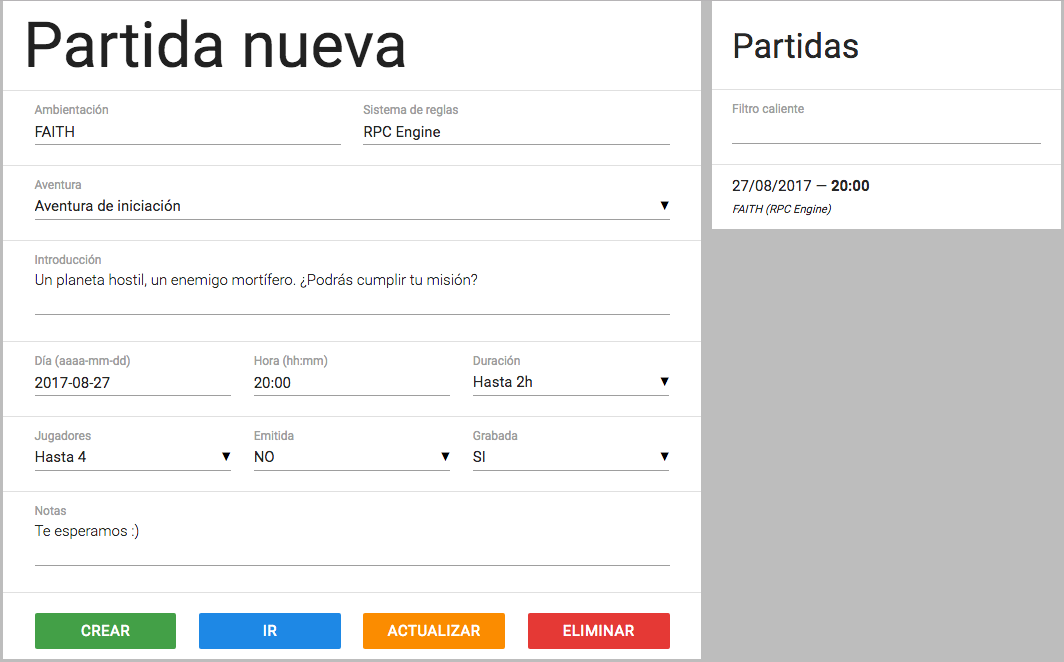 1) Creamos (programamos) o cargamos una partida para que se apunten los jugadores.