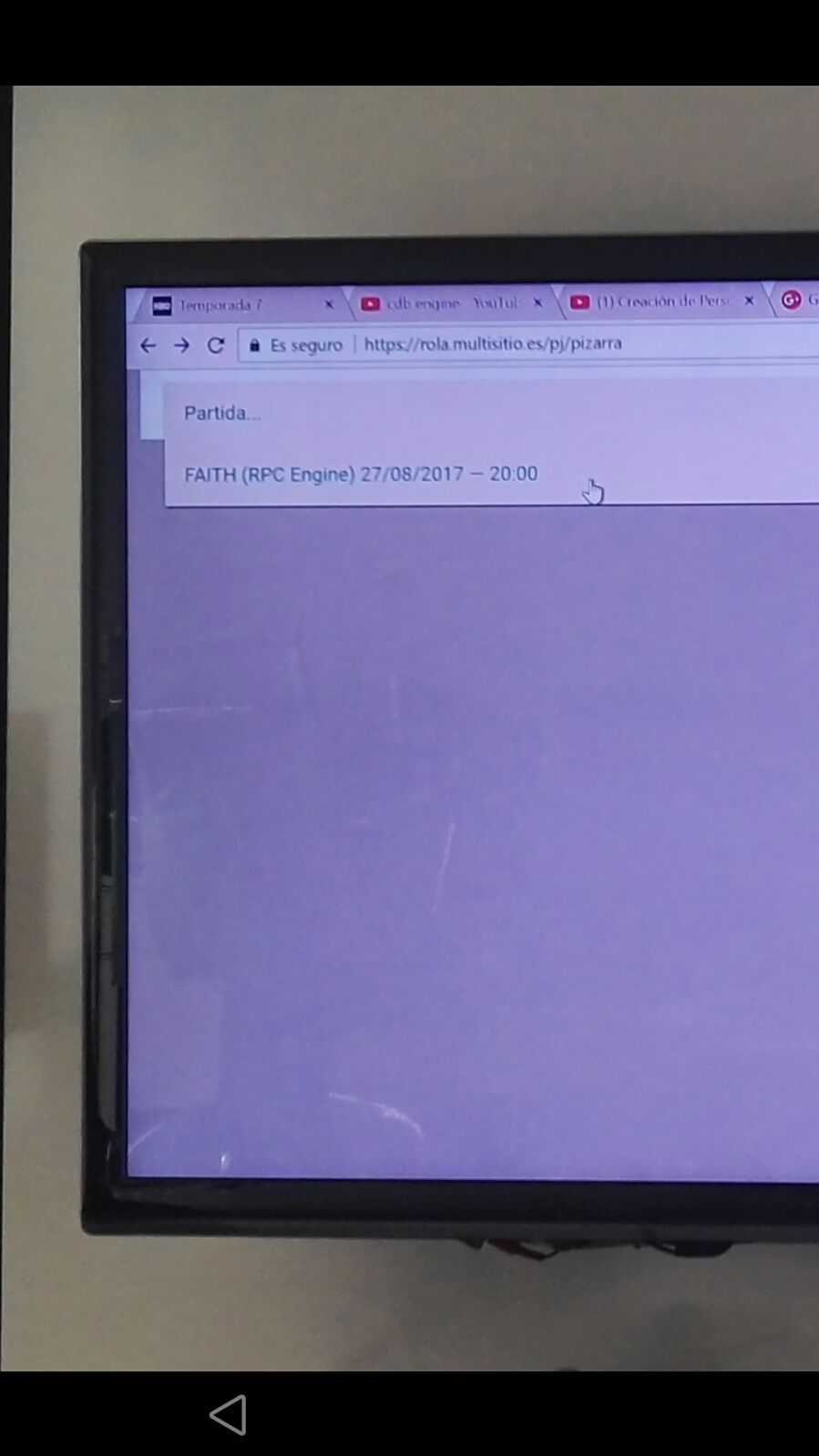 2) Cargamos la pizarra en la televisión u otro dispositivo con pantalla grande seleccionando la misma partida que hemos creado.
